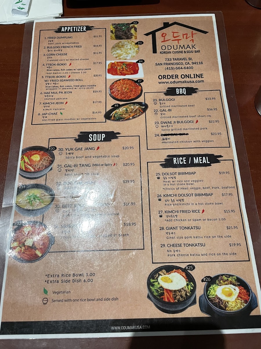 Odumak isn’t just a place to eat; it’s a celebration of Korean culture and flavors. Whether you’re looking to enjoy a late-night bite with friends or throw a large birthday dinner, this restaurant effortlessly caters to the desires of diners seeking both ease and indulgence. With scrumptious flavors, a friendly vibe, and a commitment to authenticity, Odumak is your go-to destination for a delightful Korean meal in San Francisco.