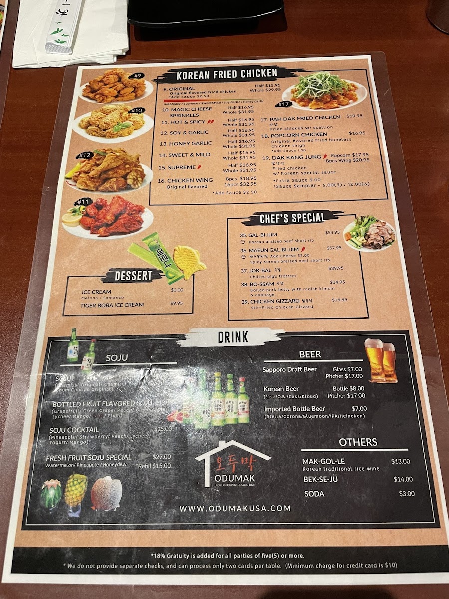 Odumak has earned a reputation for its mouthwatering offerings, particularly the crispy Korean fried chicken that has patrons raving. This delightful dish is just one highlight of a menu brimming with flavor, featuring options that cater to every palate. Treat yourself to the Bul Go Gi, grilled marinated beef that’s nuanced and tender, or dive into the Dwae Ji Bul Go Gi, perfect for those who love a spicy kick. For a heartwarming experience, don’t miss the Gal Bi Tang, a rich beef short rib stew with egg, designed to wrap you in warmth from the inside out.